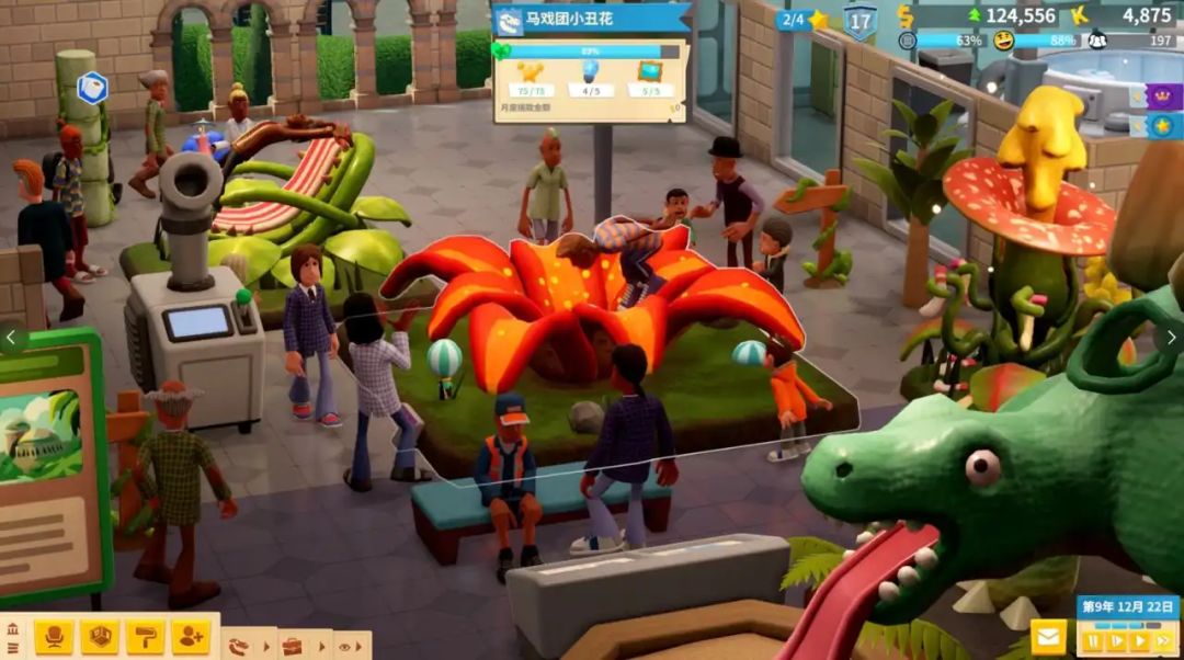 这次双点博物馆却是大幅的改革,采用五个博物馆并联式运营,每个博物馆都有自己的故事线和特色。史前博物馆主要挖掘化石,拼凑恐龙骨架,还要小心冰川时代的藏品不要融化,远古植物大口食人花还会把人变成小丑成为特殊的游客。
