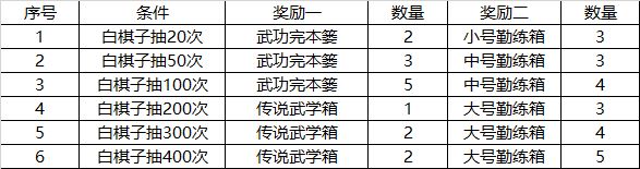 活动内容:活动期间期间累计白棋子抽奖达到一定次数可获得相应奖励