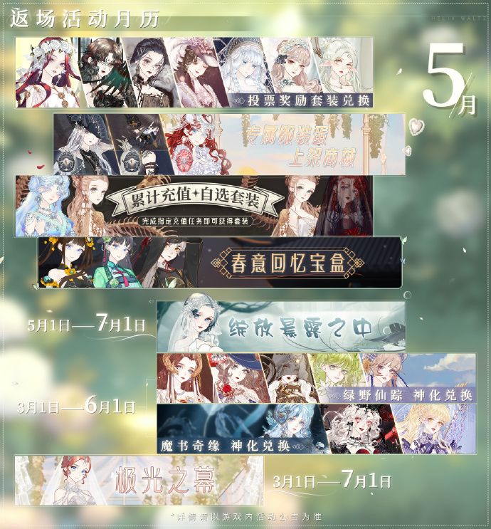 (2)【春意回忆宝盒】的概率与首开活动时的概率一致,详情可在游戏内查看。