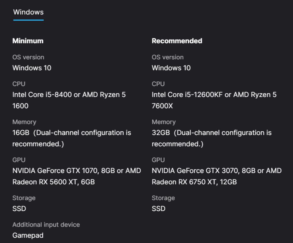 显卡:GTX 1070 8GB或RX 5600 XT 6GB