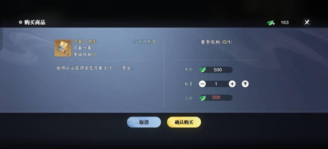 1、万象碎叶兑换的“万象·贾生”在S2赛季将下架, 换成新的“万象·天尊”,因此在更新前尽量换掉。