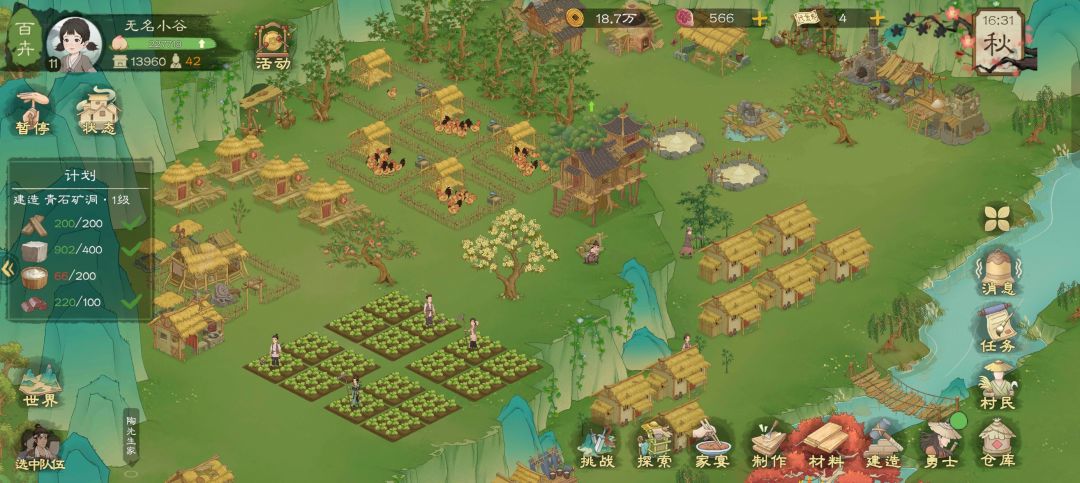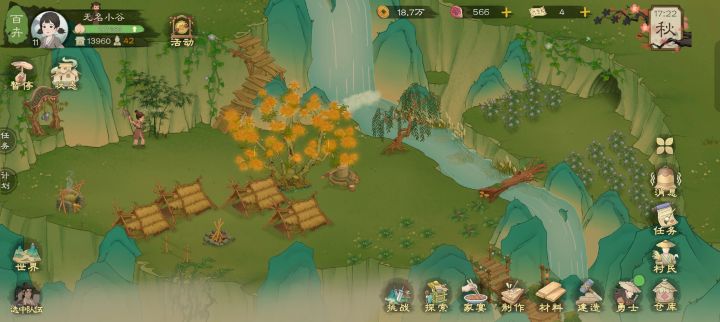 田地:目前六组,四组放在山谷左,两组放在山谷中左。山谷左边的不会再动了,山谷中左的以后可以根据需要摆放。目前是38个人够用还富余够卖。