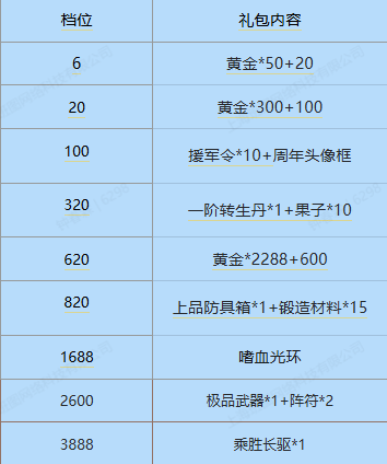 第一轮单充礼包,黄金加量。