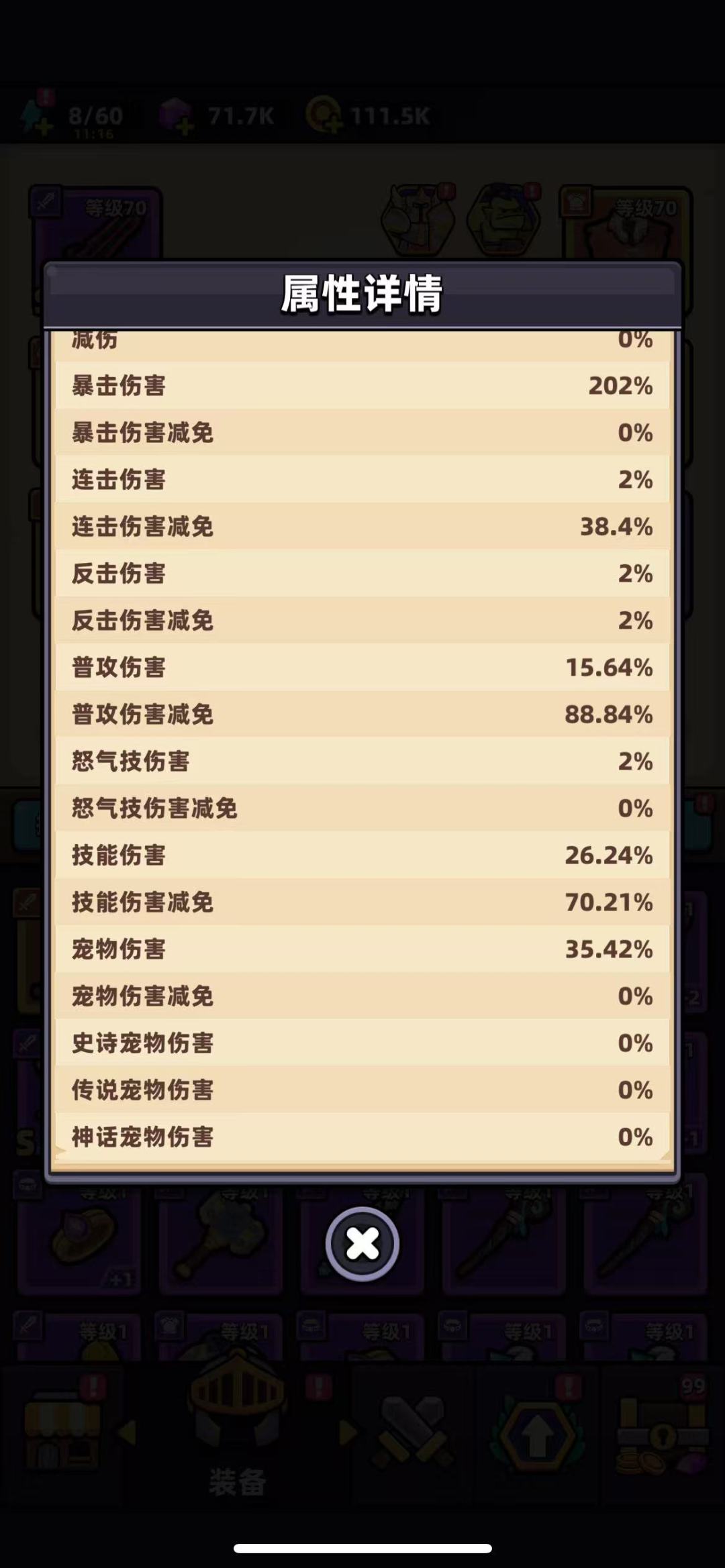 4、关于推图,在没有老虎和天之痕之前我建议选择飞刀系和闪电系的技能,等到有了裂空剑+老虎+天之痕后就可放弃飞刀系和闪电系的技能了,选择普攻和连击类的技能。冒险者可以花3000钻石买,毕竟龙女周期太长了,我上舰时都还没有。宠物选择冰风狐(控制)+小飞象(回复)+史莱姆(连击)。70-80层,建议血量到达40M,普攻减免和技能减免在75%以上,要能抗住BOSS一次大招,最重要的是,零氪攻击一定不够,一定要有连击精通或者越战越勇,选到就能一次通关。