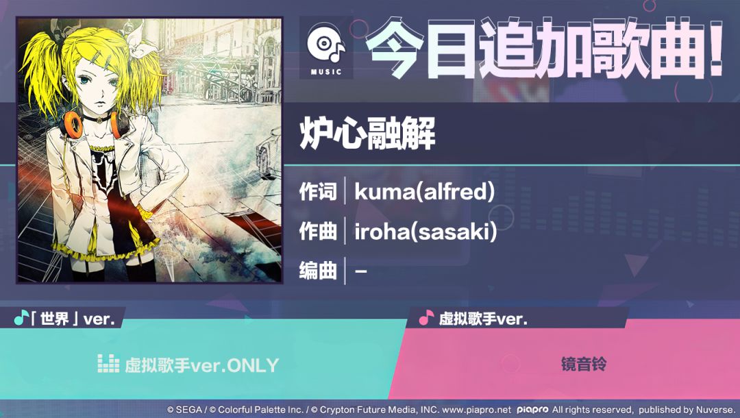 5/3 15:00起,将追加歌曲《炉心融解》!