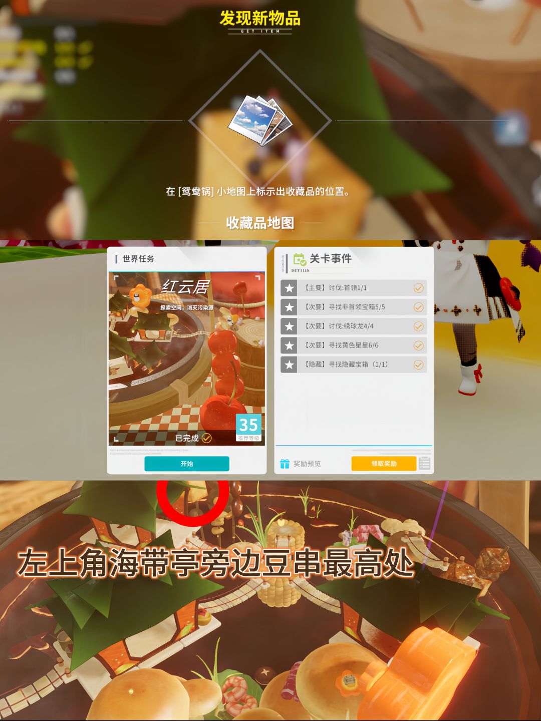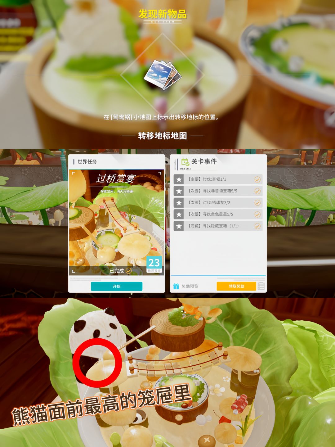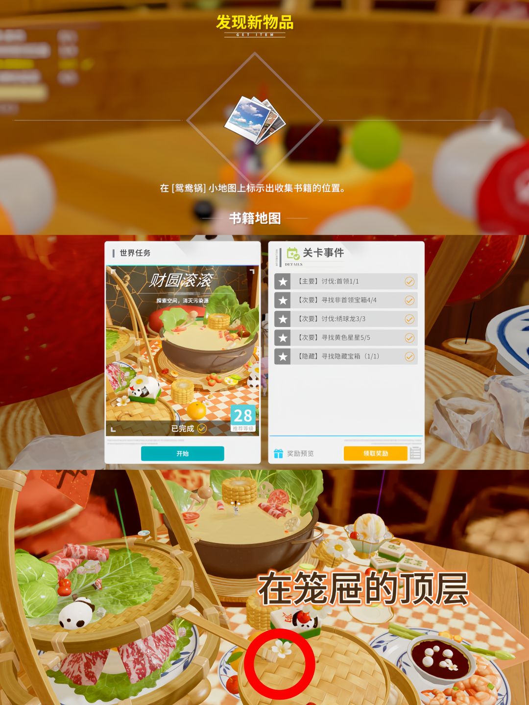 菌汤红辣双拼锅:解锁•小地图标示出资料的位置