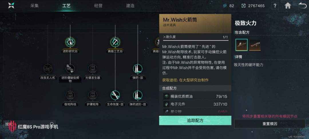 ③大型研究台(需要消耗电力)制作MR.WIsh火箭筒加入道具快捷键。