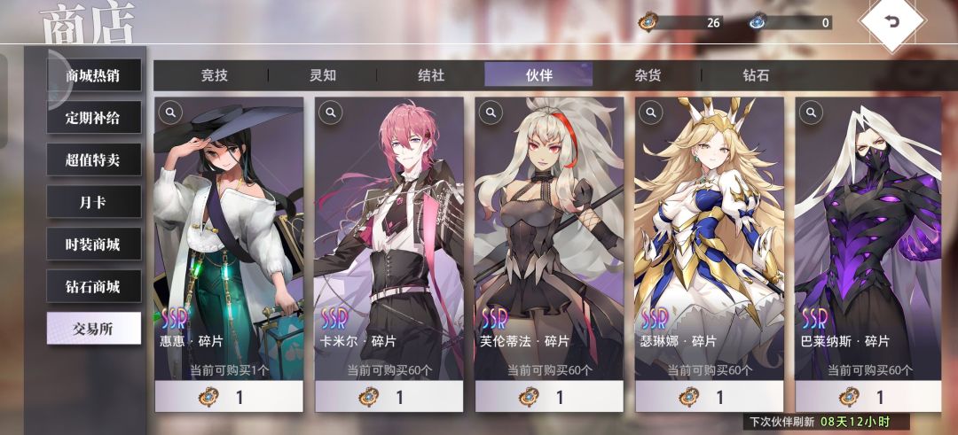 - 钻石与体力规划:钻石优先购买体力(拉满),用于刷崩坏关卡获取角色突破材料。伙伴商店换苏我美雪与妮可拉碎片;竞技场商店换伙伴石、荣耀宝石提升角色属性。