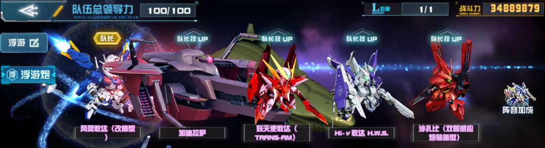 当我方上阵5台主角型或5台浮游型机体时,开场前45秒降低敌方全体60%能量回复速度。