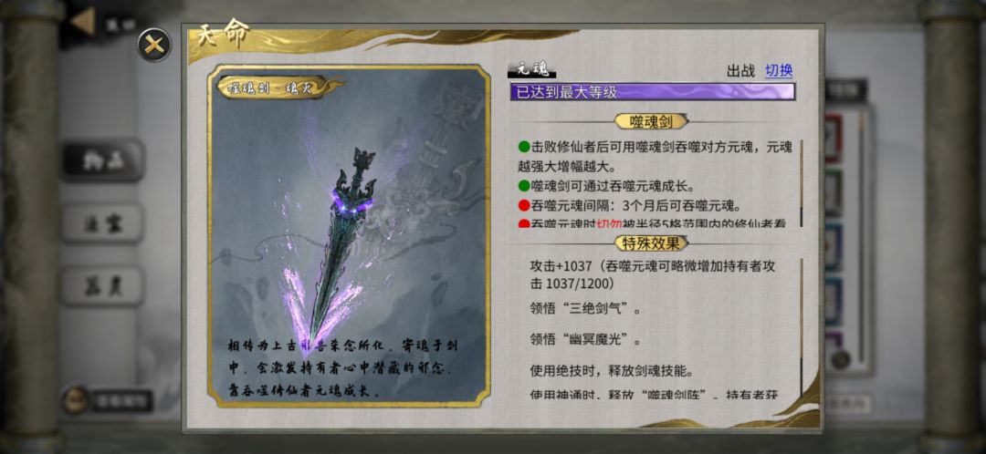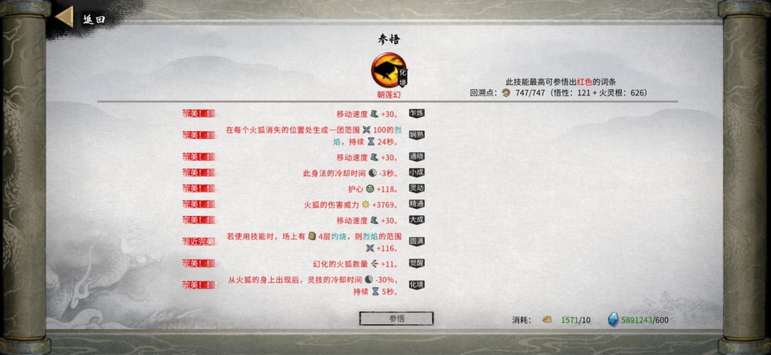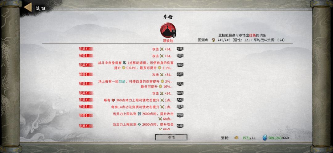 想凹更高可以多学一点悟道功法,但是太拖时间,学一本有半年的冷却。词条也是很常规的大成火剑,这里就不赘述了。元婴就成型,衔接没什么问题,就不展示了。