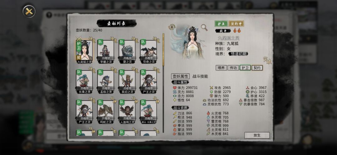 悟道妖兽就足够了,放出来打控制和吸引仇恨,也能抗住奇遇梼杌的伤害,方便安全输出。这里推荐鲮鱼控制拉满,用狐狸的原因是因为脸黑,一直吸取失败抓不到鲮鱼。