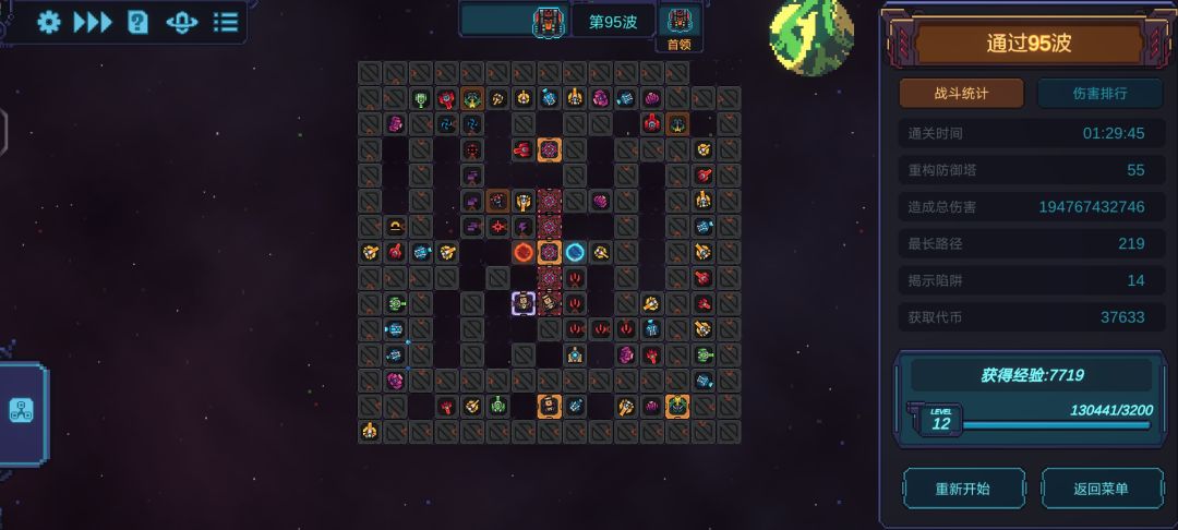 这个过程比较让人惊喜的一个发现是,增幅器配处决陷阱伤害特别高(可能还有敌人会往回走一次的原因),直到93波,BOSS都是能直接处理掉的