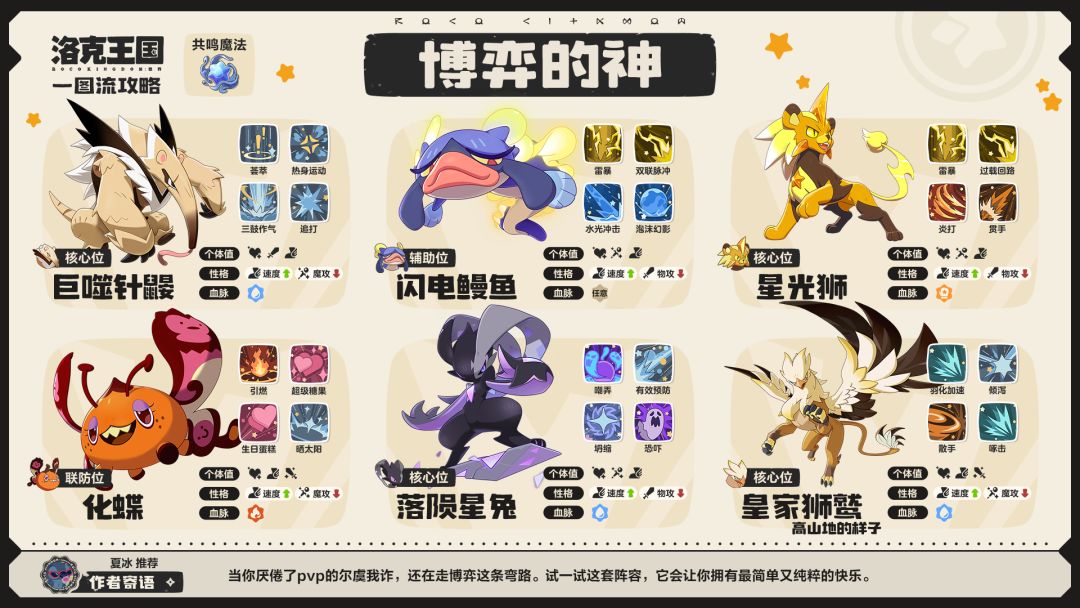 我们特意邀请到了本次测试中出色的五位决斗家@吃西瓜的夏冰、@黑商-洛克王国世界、@哈密i哈密、@黄前久美子、@单兵 为小洛克们带来闪耀大赛阵容推荐,快组建你的精灵战队吧!