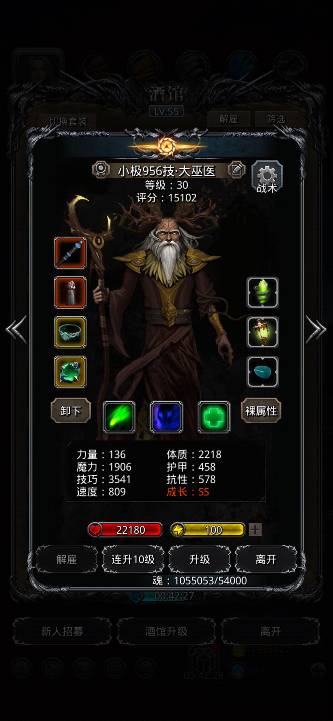 2、巫医:50%自己 80%队友,关攻击