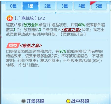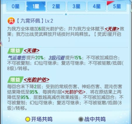开场共鸣:所有上阵灵武均生效,时机在星姬星域技之后,整场战斗一次