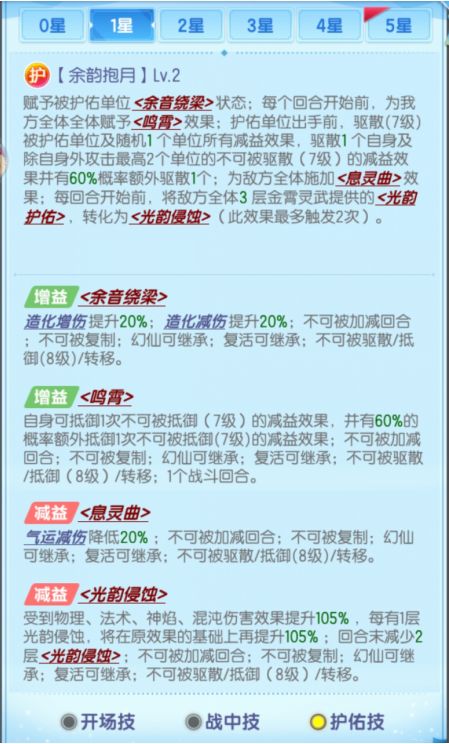 (2),破障篌音,由于第二回合生效,而绝大多数光韵庇佑都在第一回合附加,通常情况下,只能靠每回合出战一层降低,略微提升了金霄灵武的光韵庇佑消耗速度。