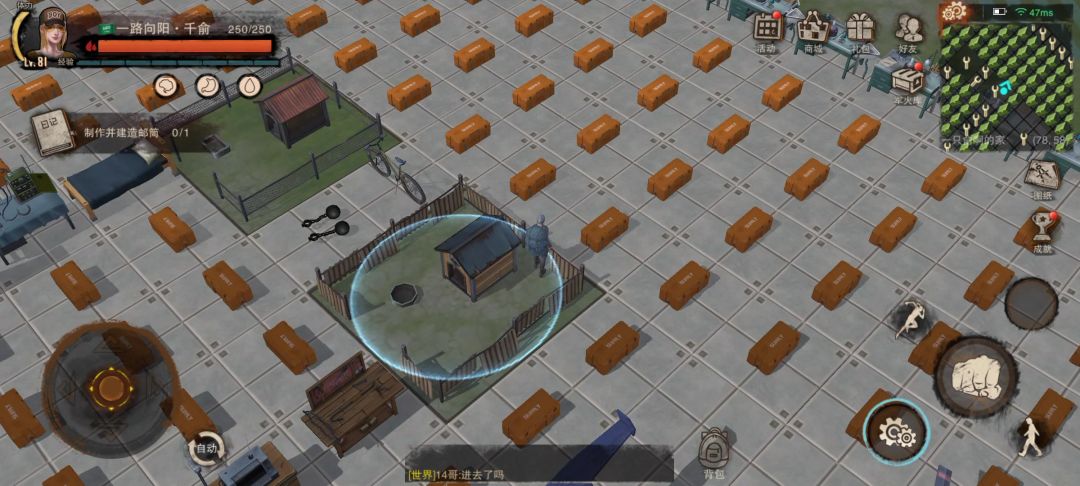 有的苹果玩家,弄不了卡顿,但是用男角色,站在自行车或狗窝旁边,不停的点翻滚,有时候也是能滚进去的。