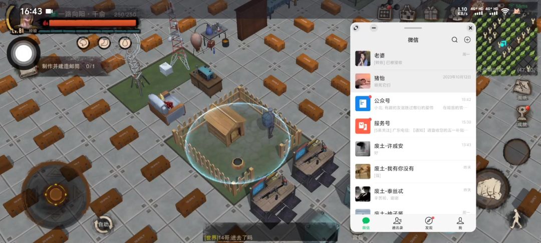 第二种:还是要开小窗口,打开微信给自己发时长比较长的视频,因为发视频也比较耗流量。那么发视频、游戏两边都要流量。跟上面所说的一样,我就不多说了。如果开微信小窗还不够卡,可以多开一个任意软件小窗,来回切换。一会我在下面发视频教程!