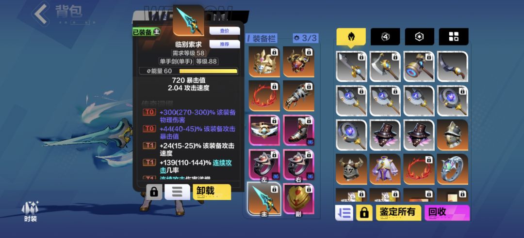 注意暴击率 因为选择游侠再接再厉 扣了非常多暴击值 所以更吃暴击了 所以请打桩注意看看暴走巨刃的暴击率再多少 尽量满爆