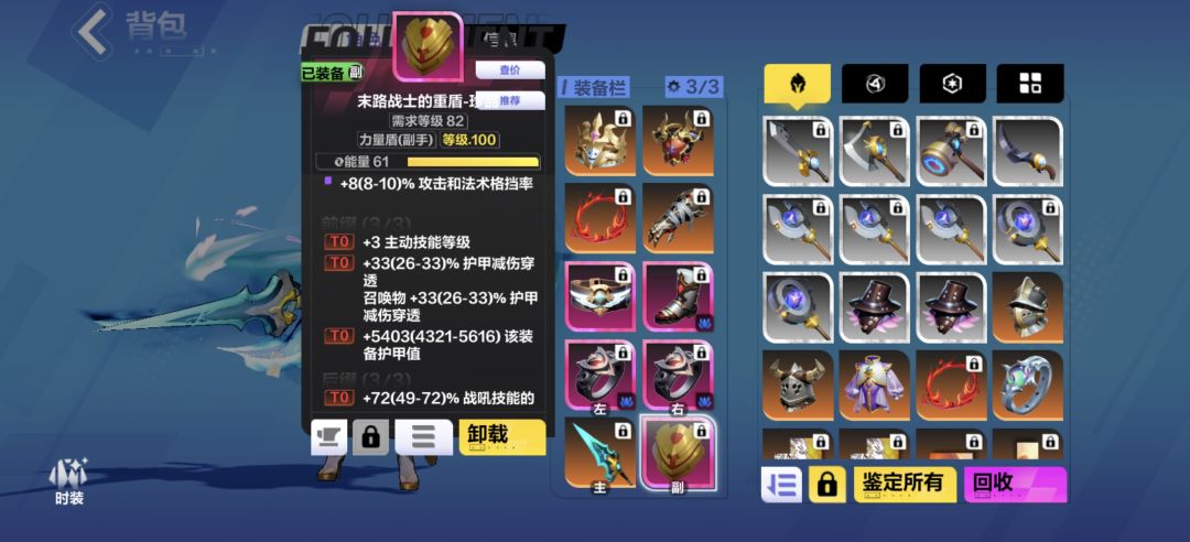 盾牌就普通的格挡率护甲底子 前面一定要护甲穿透 元素穿透没用 因为这套是纯物理流 不吃元素穿透!! 然后第三条本来我打的格挡率 但是为了生存 吧格挡换成了护甲值 这样护甲就能堆的极高