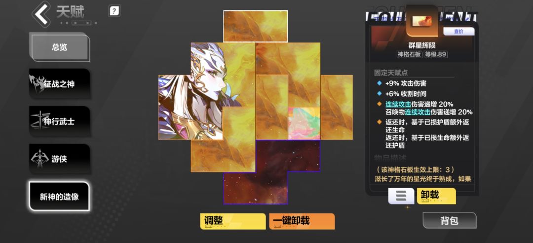 大石板我必备全面防御 全能战士必须样样俱到 而且深空幽邃持续伤害现在很多 所以全面防御必备 你也可以蜡烛上找