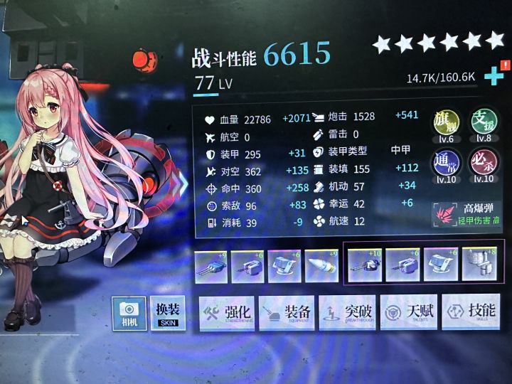 增加17%(10点)的油耗,可使重炮经验增加25%(219点),算上支援舰的经验增幅合计为约提升27%(316);其他捞船奖励会减少14.5%(10/69)。