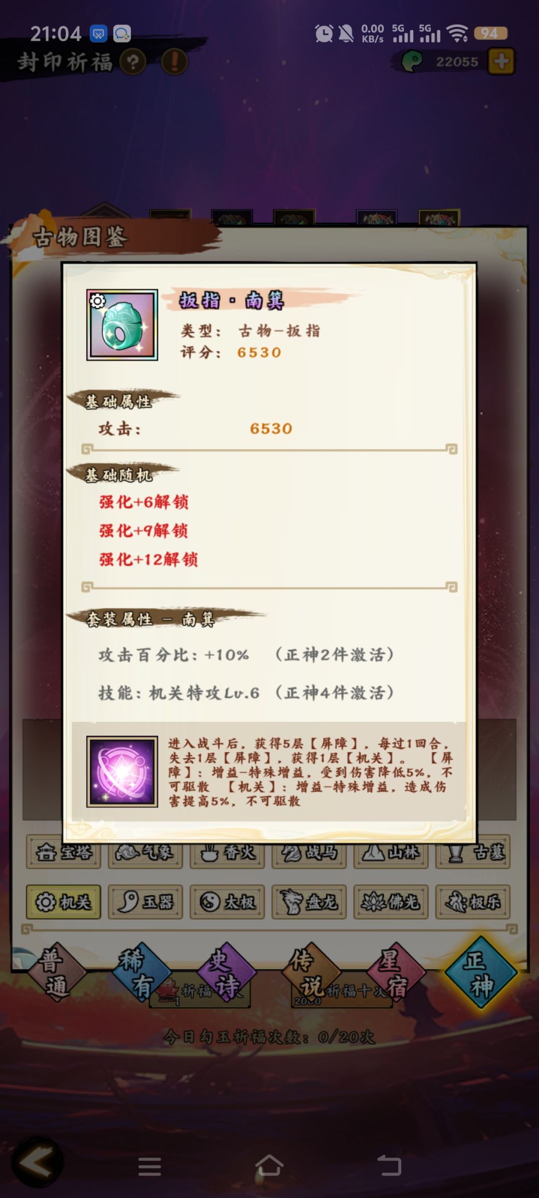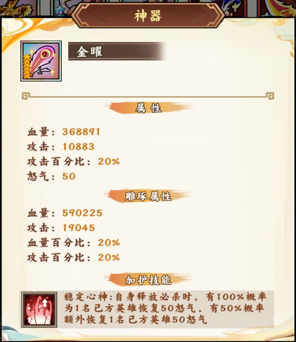 小tips:古物带南箕,神器待阮咸,既能吃到稳定增伤,又能吃到暴击的特殊技能,也是很不错的选择呢