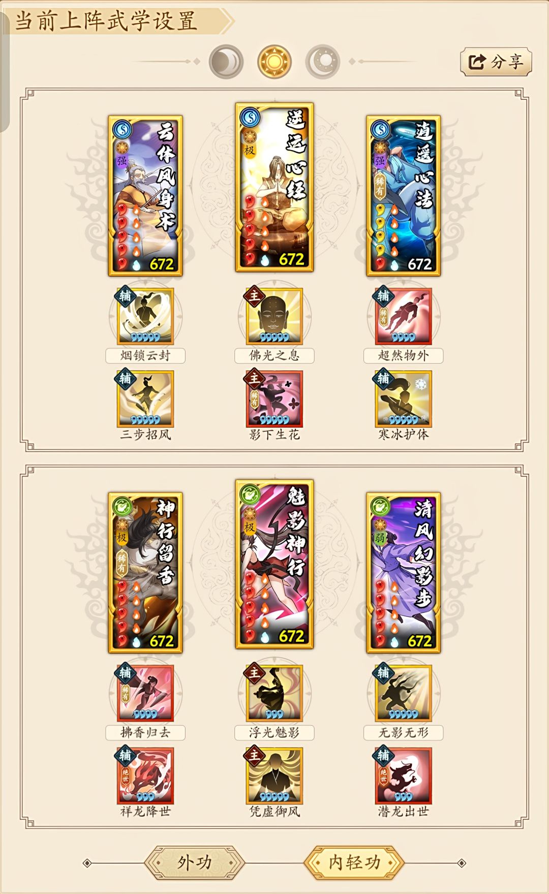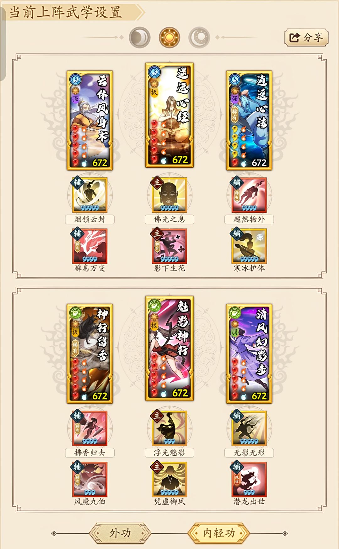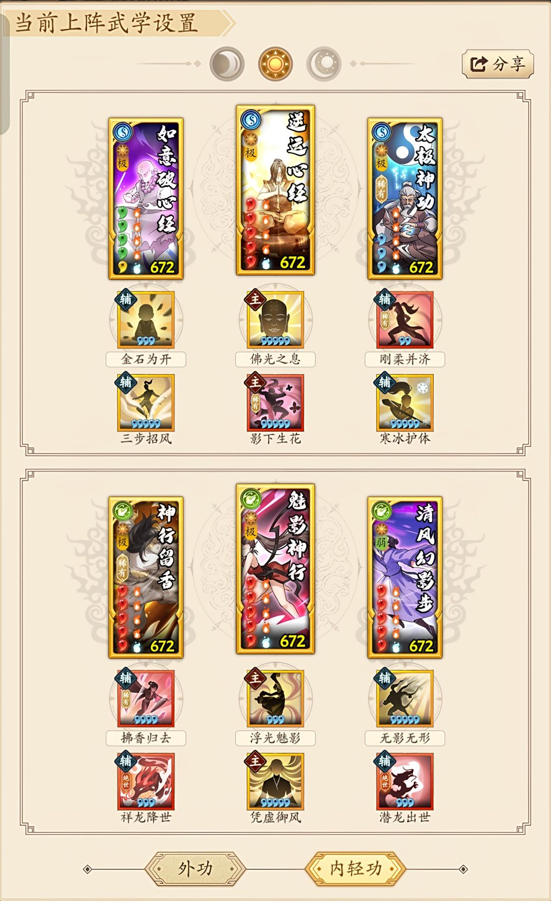 武学:玉慈九剑,内轻:魅影神行,稀有:神行留香,绝世:五岳苍穹剑/倚天剑法