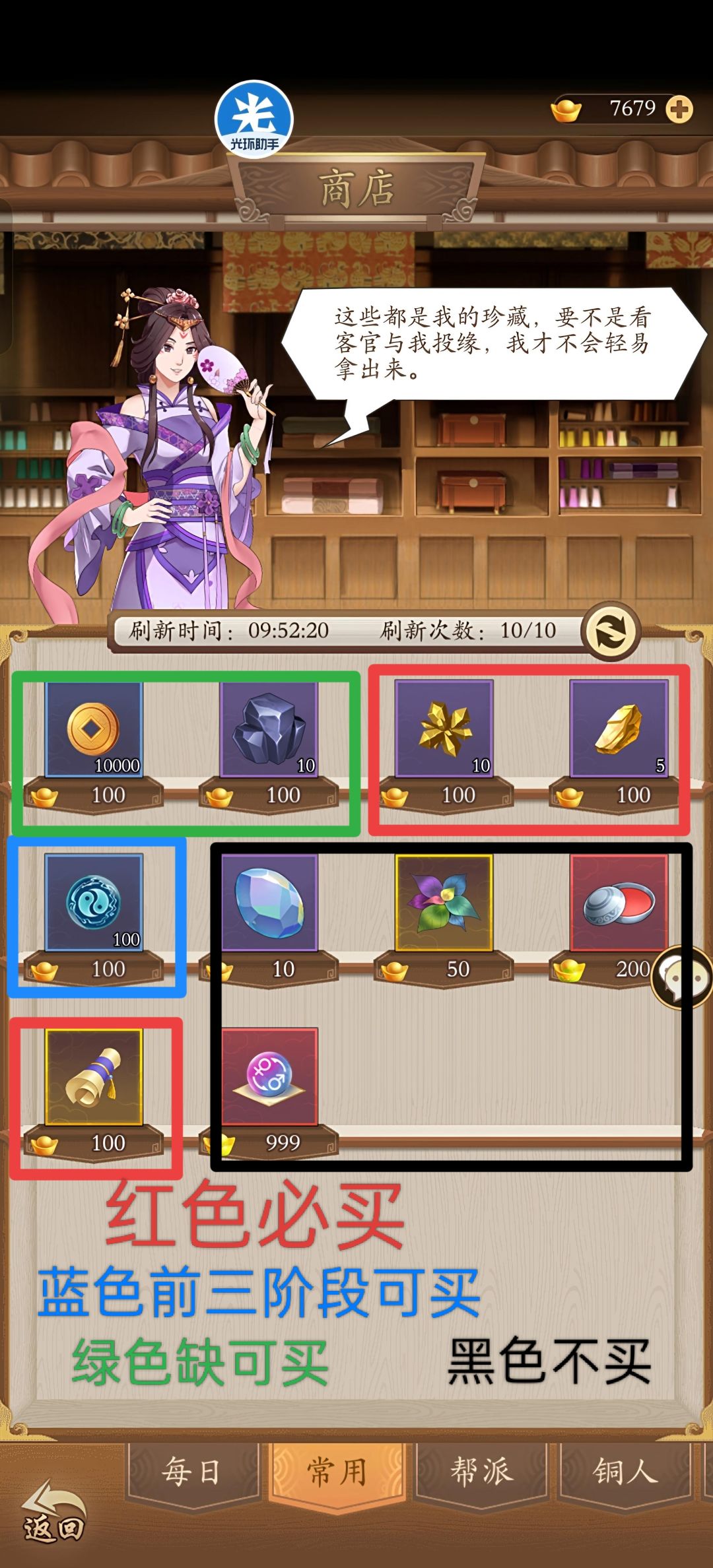 常用商店刷新3次足矣也可根据自身氪度定夺