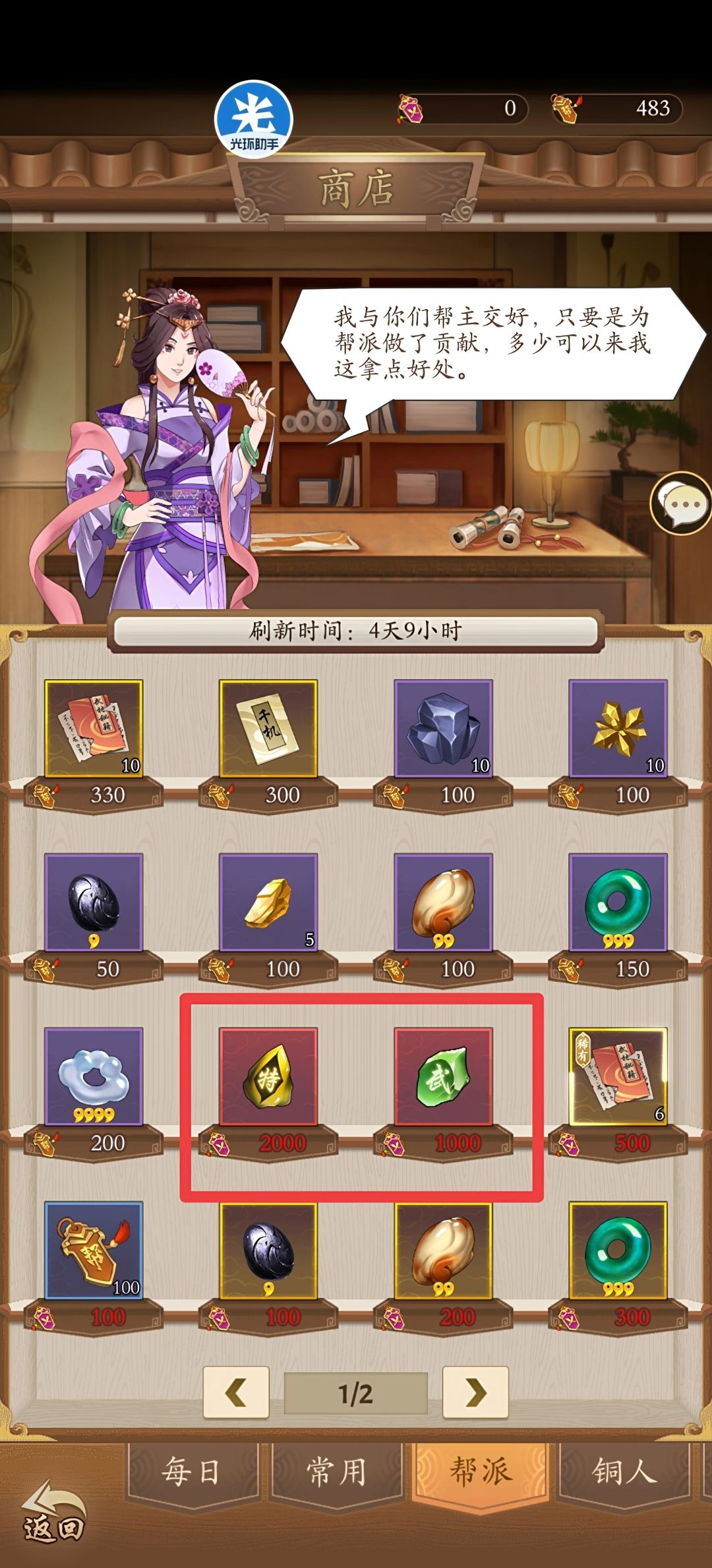 特典商店优先买自己流派的武学皮肤即可,霸图商店通通不兑换,等3.4阶装备出再进行兑换拓印石