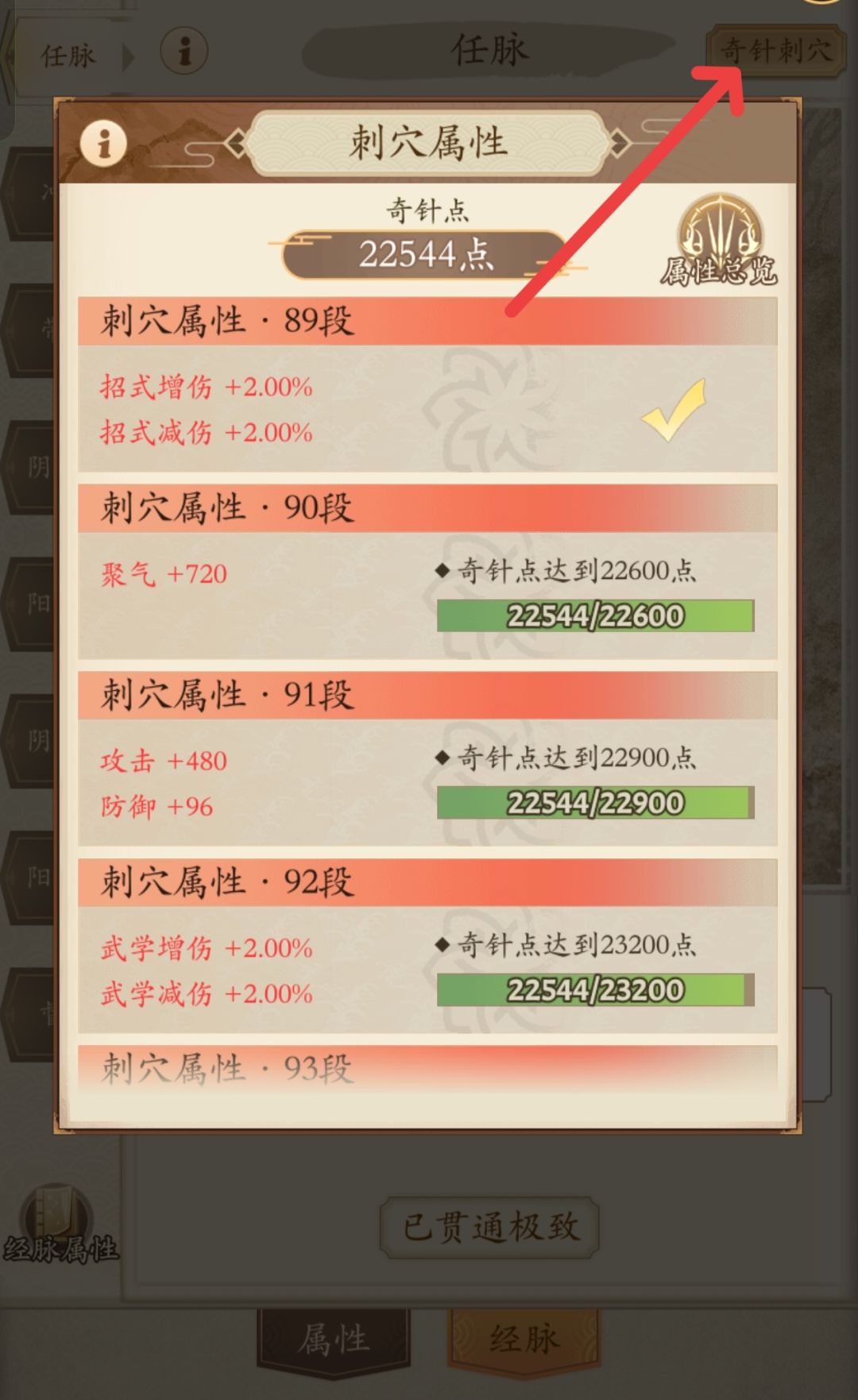 刺针点法必须忽略针位当前小属性,需要平均分开点拿总属性