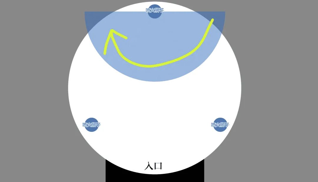 完美输出环境:刚喷完火的方向,远离毒圈 。