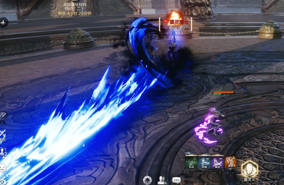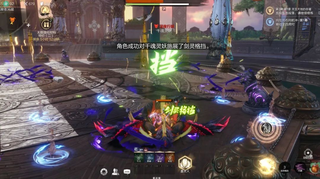 击破所有落灵石后,千魂灵妖激活,注意其蓄力抓和俯冲技能,均为条形伤害,可侧向闪避躲避 。