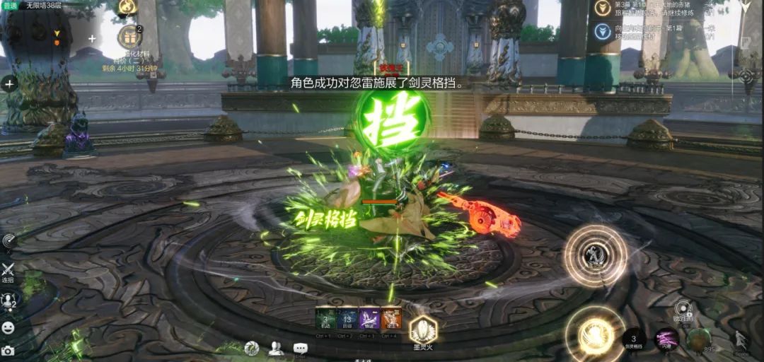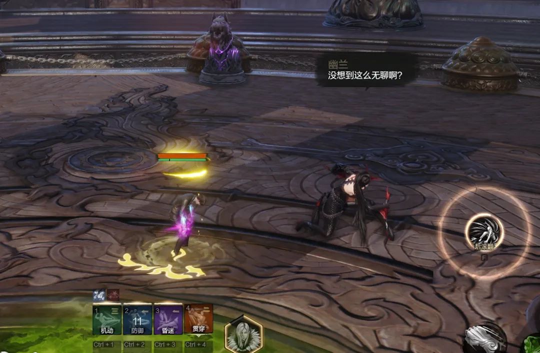 看到幽兰凝聚护盾时,使用格挡贯穿武功即可打破护盾。