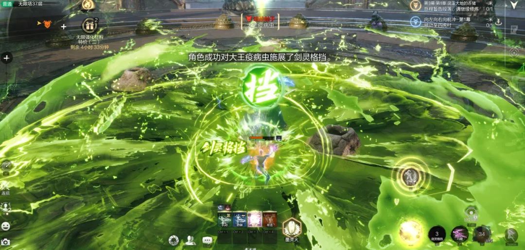 Boss头上出现“真是可笑”时,会格挡反击,没有格挡贯穿技能时停止攻击 。