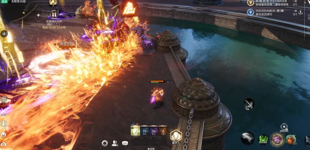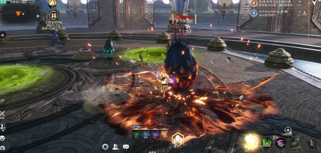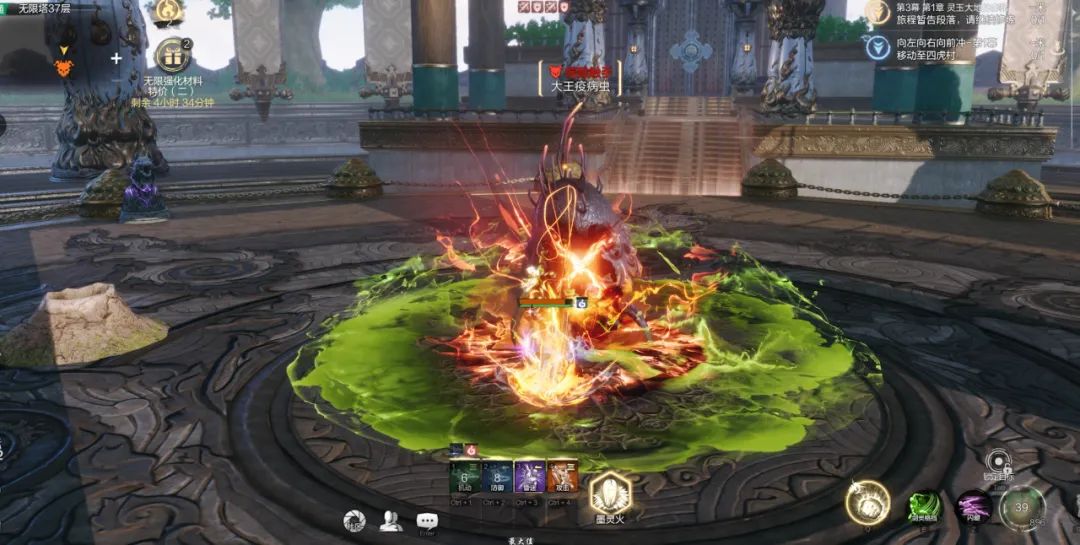 与31层不同,36-40层需要在第一次喷火结束后,将Boss拉到12点方向 。