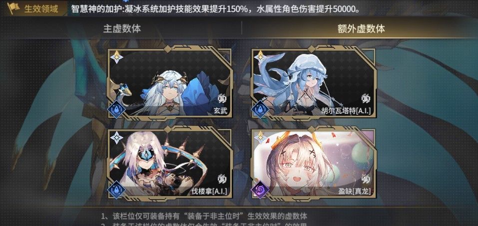 副装备栏,带一张危险拥抱,一张授冠仪式·凝冰或一张二重身·绀碧,一张水系法悦泥犁或一张星之桎梏。其中危险拥抱可以通过神狱桃源乡制作;授冠仪式·凝冰和二重身·绀碧可以通过攻略终焉之影封印战制作,选择普攻上限与暴怒词条;法悦泥犁可以通过永劫回归紧那罗制作。三个回响均在右下角工坊回响锻造里锻造,如果三个回响缺一均可用星之桎梏替代。