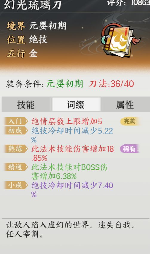 其他搭配的主要词条:符剑刀符:推荐带金刀,核心词条绝情层数上限