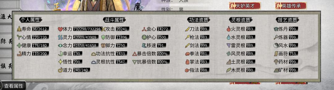 本方法适合追求比较高五维的玩家,不需要考虑流派,或者说一力破万法本身就是一个流派,在获得极高五维的情况下,大家可以选择更多自己喜欢的流派。(我自己选择的是纯剑修)