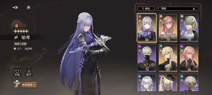 阵容推荐铂鸢,零,萝歌丝 80级以后可以考虑零换赫菲