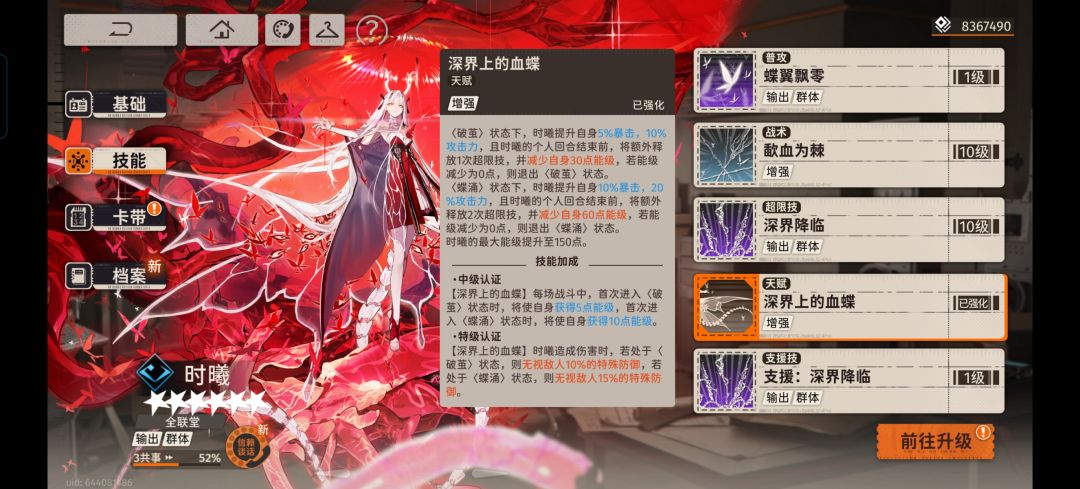 时曦要高伤害就需要维持特殊阶段的状态,高频率释放大招。特殊状态下能级变为0就会直接退回常态,所以恢复能级对她很重要。1门很关键,配合上手动主动释放战术技和常规充能手段(夜来,组长支援技),没有充能环境也能勉强用用,记住不要无脑主动超限技,适时插入战术技,维持特殊状态的收益比断状态收益高。但是最好还是绑一个鹿游,这样的话,得益于时曦是无视站位的真群攻,像下半深渊这种群攻环境,能级基本上没有问题,能做到一直一回合3大。
