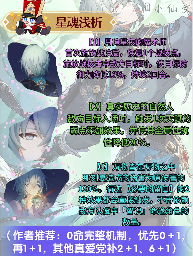 总结下来,0魂那刻夏完全体,0+1就能比较舒服的玩了,1魂2魂提供稀有乘区和优化手感,后续星魂提升也不错,但性价比上更适合真爱党。