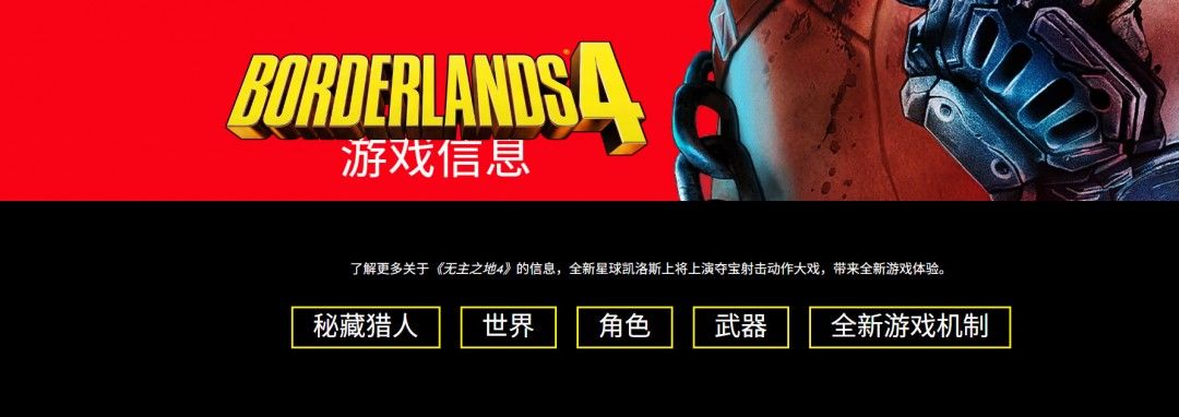 Play首度全面揭晓《无主之地4》,本作的中文官网也更新了大量新的信息,包括四位全新秘藏猎人,联机和本地合作,其他角色和武器、全新游戏机制等的介绍。