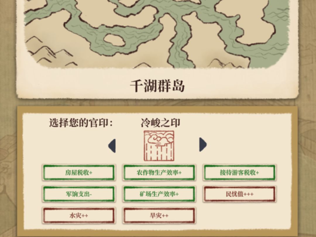 在《满庭芳:宋上繁荣》的“无尽模式”,玩家可以自由选择附带不同效果的官印,一共有如下七种: