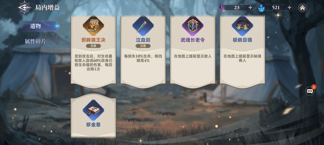 遗物兵法最优先,其次只拿护盾生命格挡减伤有关的。