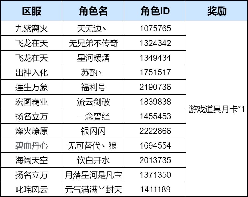 揪12位用心的寻火者,发放【游戏道具月卡*1】!