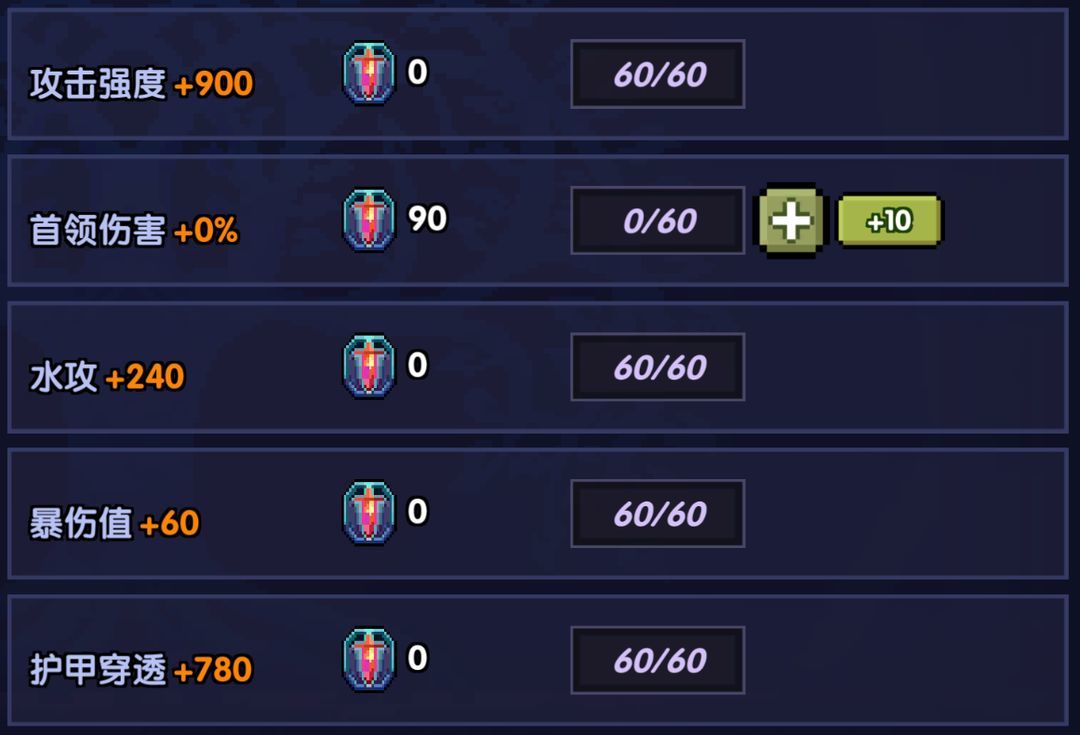 动力注入器: 爆伤 穿透 属攻(暴击不够可补暴击)