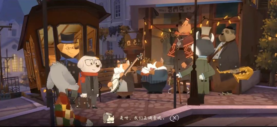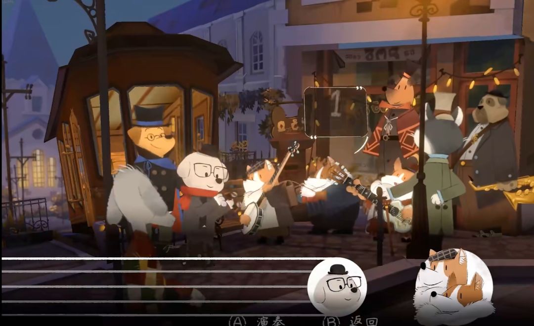 1️⃣先在电车站附近遇到狗狗乐队,获得音符🎶
