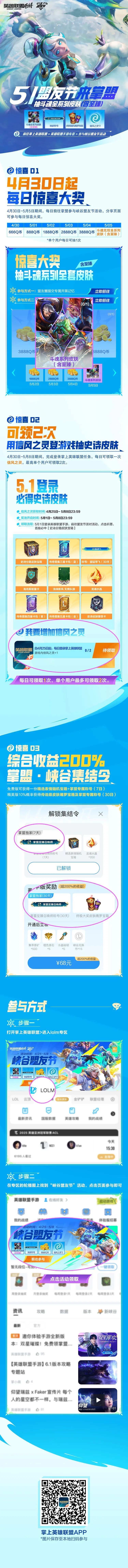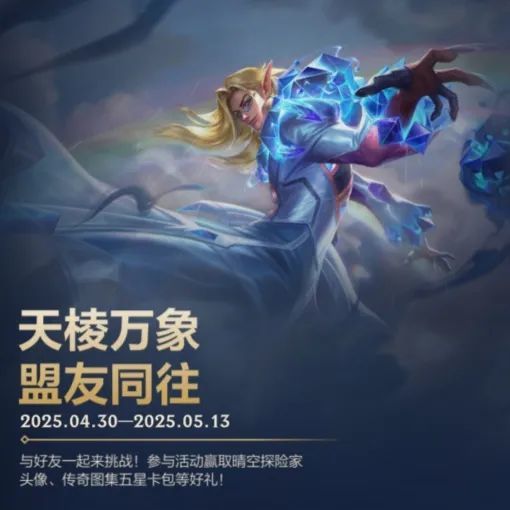 截止至5月13日23:59,召唤师参与活动即可赢取头像-晴空探险家、传奇图集五星卡包(金)、传奇图集四星卡包(紫)、微型海克斯能量卡等好礼~