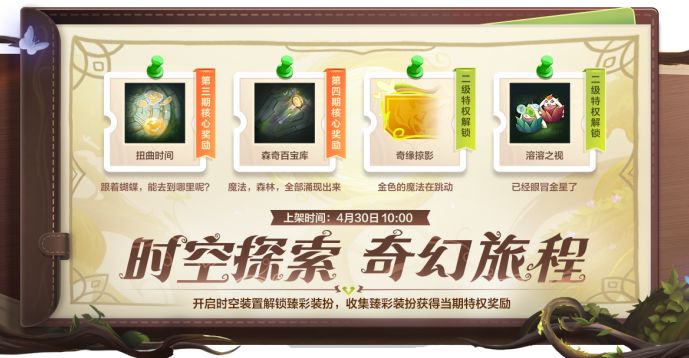 时空探索期间,商城还将限时上架时空探索每日礼包,开启礼包必定掉落集萃原矿*5及不同数量的森光凝粹。启动时空装置,独一无二的臻彩道具和更多丰厚奖励等待召唤师解锁!